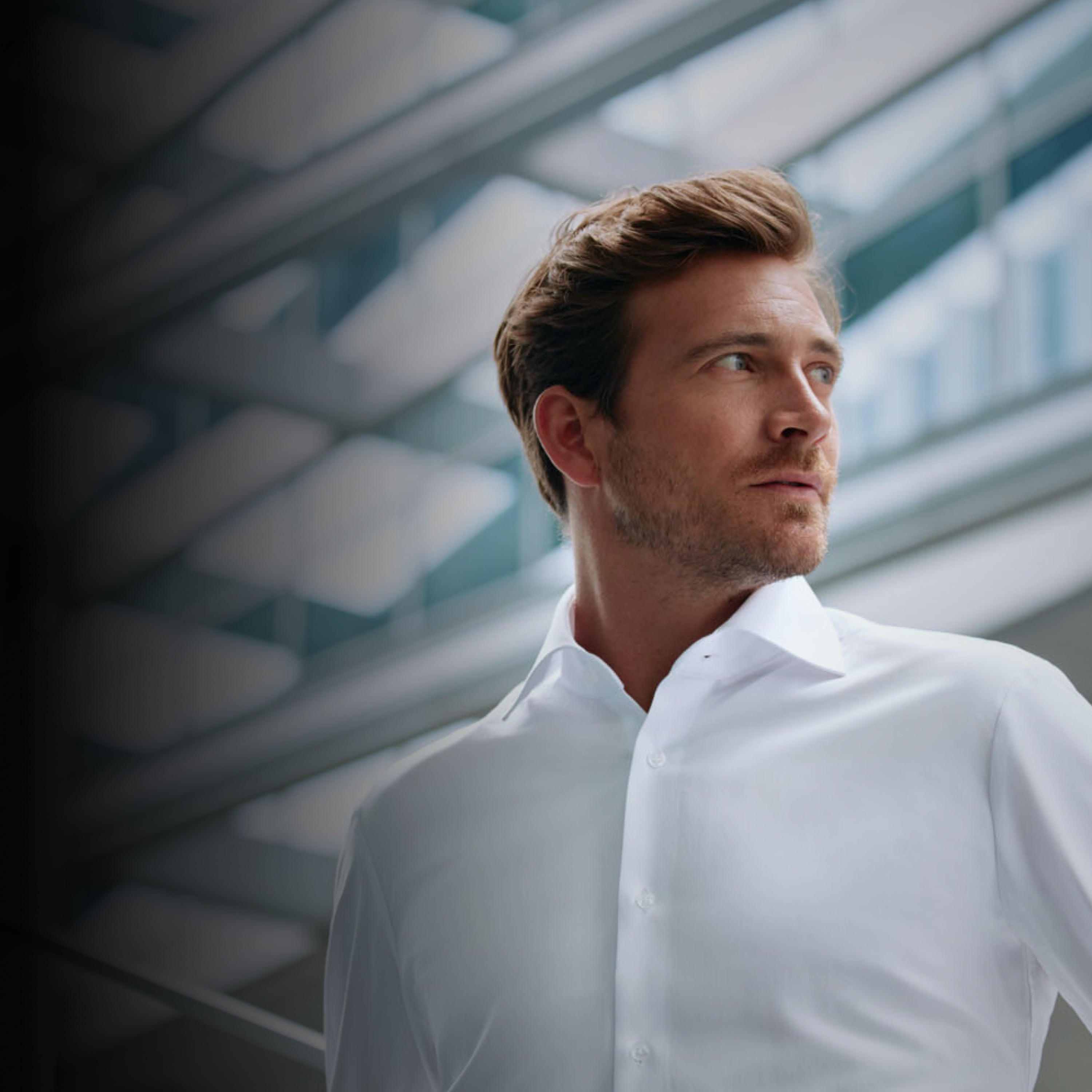 Das Hemd besteht aus hochwertiger Baumwolle mit Easy-Iron-Ausrüstung, wodurch es pflegeleicht und leicht zu bügeln ist. Der Stoff ist atmungsaktiv, weich auf der Haut und sorgt den ganzen Tag für ein angenehmes Tragegefühl. Der Modern-Fit-Schnitt bietet eine leicht taillierte, moderne Silhouette – gepflegt, aber komfortabel.
